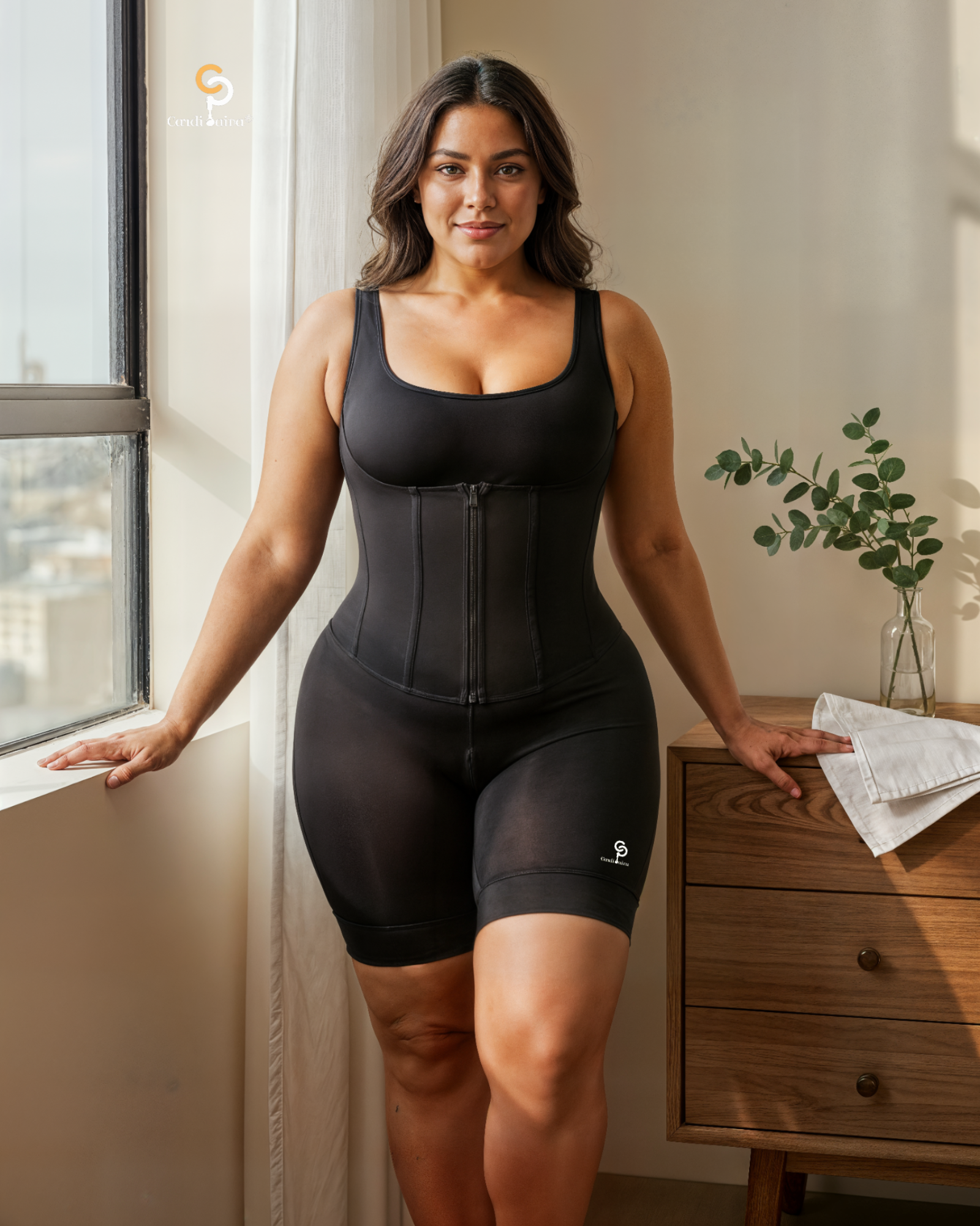Experience the ultimate shaping and support with our CardiPaiva shaper bodysuit 5 in 1 because it shapes your tummy into a flat apearence holds the tick skin on the shoulder, lift your butt, Supports yourchest and reduces the waist shape line.! Made with Spandex/Nylon and silk for a comfortable fit, it provides firm control and anti-bacterial properties for daily use. The zipper one-piece design lifts your butt and supports your chest, while being hand washable and needle-detected for quality assurance. Transform your body and the appearance of flat tummy and lift gluteo with confidence today!